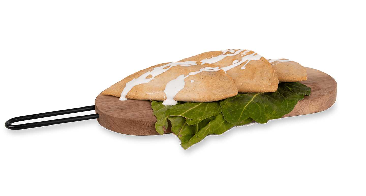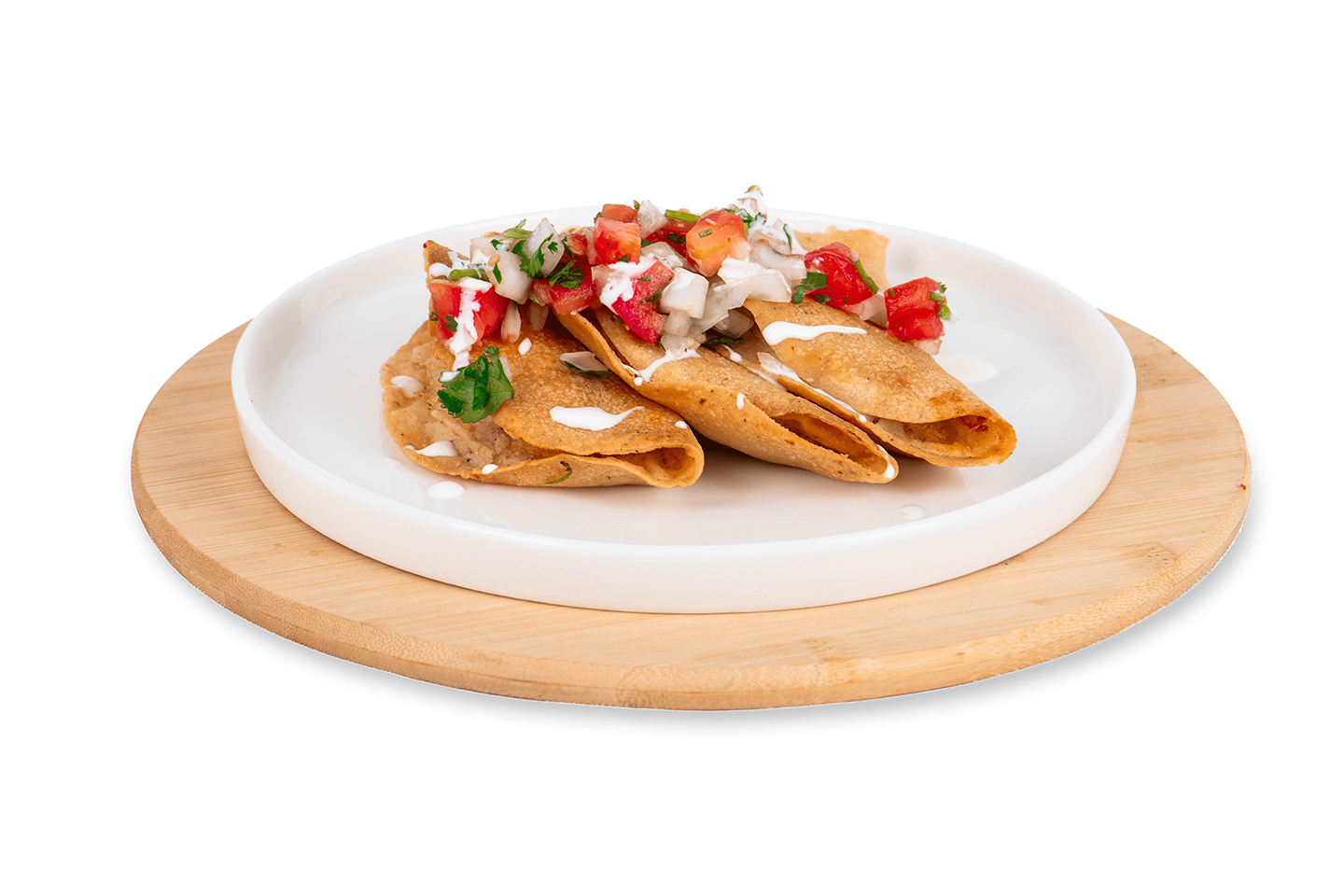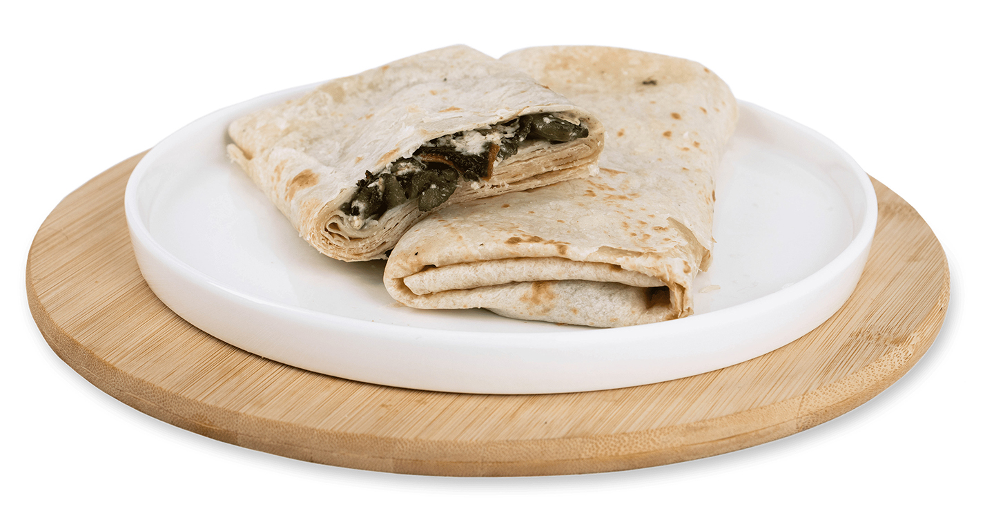 • Tortilla de harina rellena de rajas poblanas y queso.