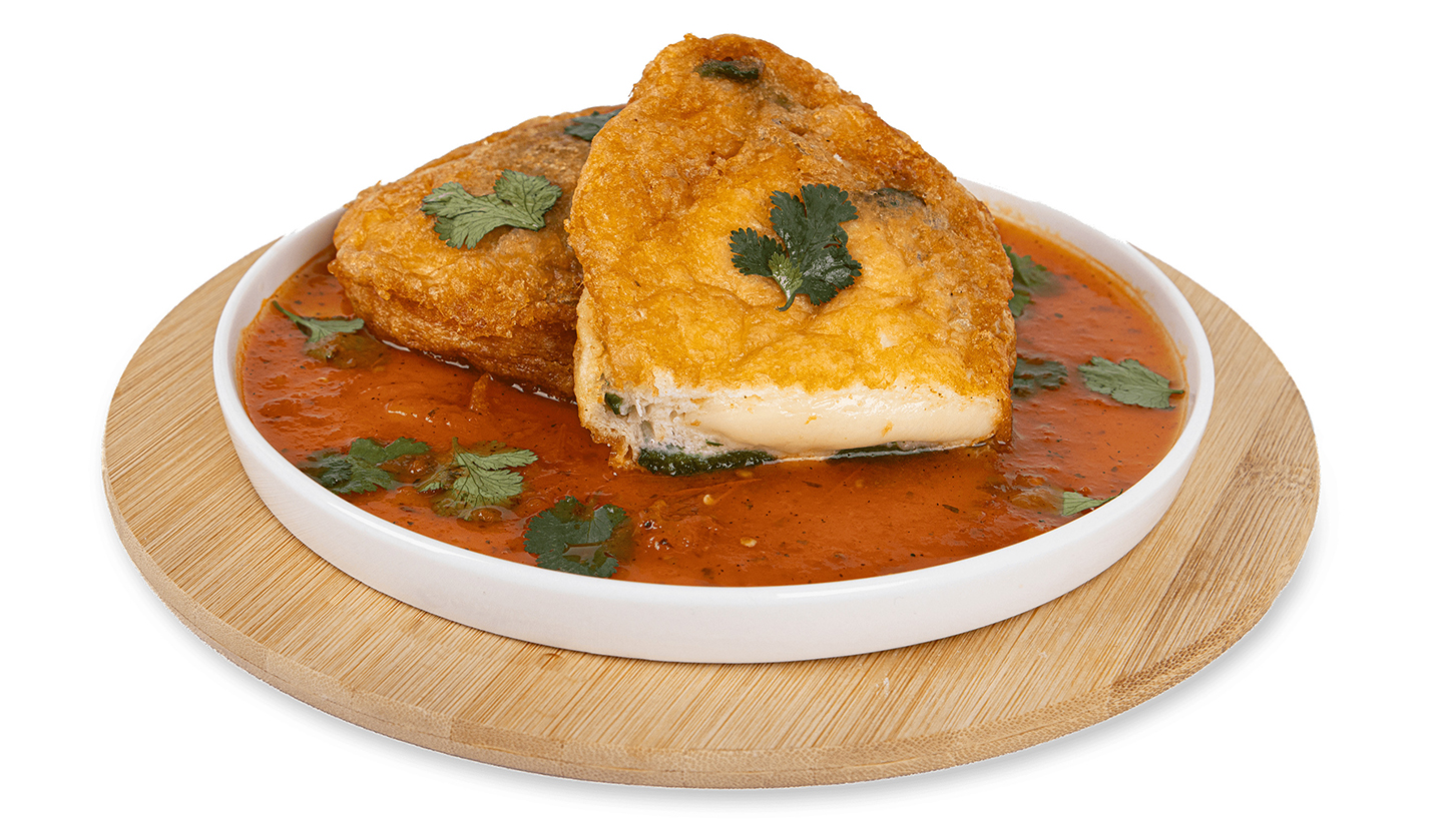 • Burrito de chile poblano relleno de queso, arroz y frijoles